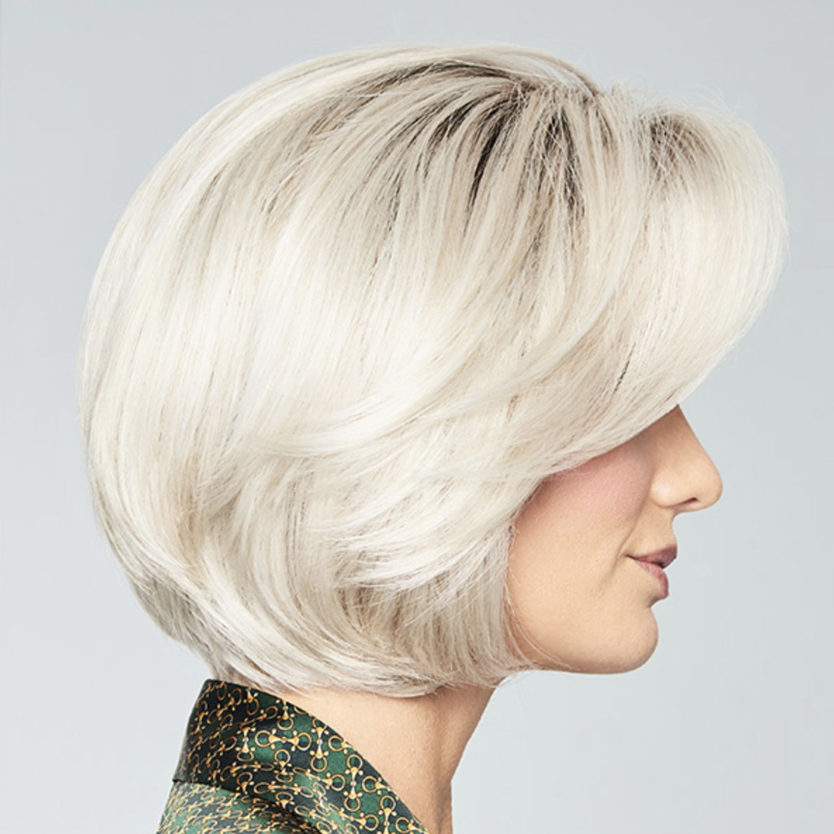 This softly waved chin length cut gives the classic bob a new twist. With a sheer lace front and Hand-tied top for varied styling options, the layered texture throughout allows for natural movement, and the beautifully tapered lengths make this a light, timeless classic.